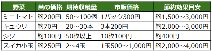 【節約試算】苗と期待収穫量まとめ