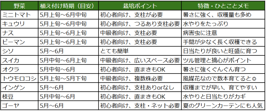 ネットで調べてみると、この時期に植えられる野菜はたくさん。