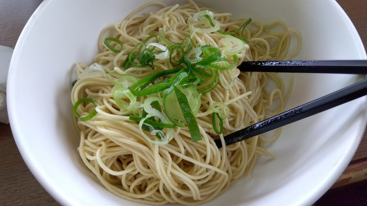 替え玉には刻みネギがトッピングされていて、こうしたちょっとした心配りもうれしいポイント。