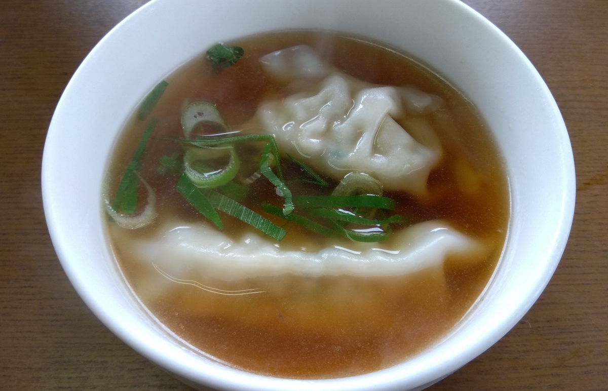 餃子スープは、和風のような出汁の味が効いたやさしいスープ。私はスープだけ味見したのですが、餃子を食べた妹によると「普通においしかった」とのことでした(笑)。